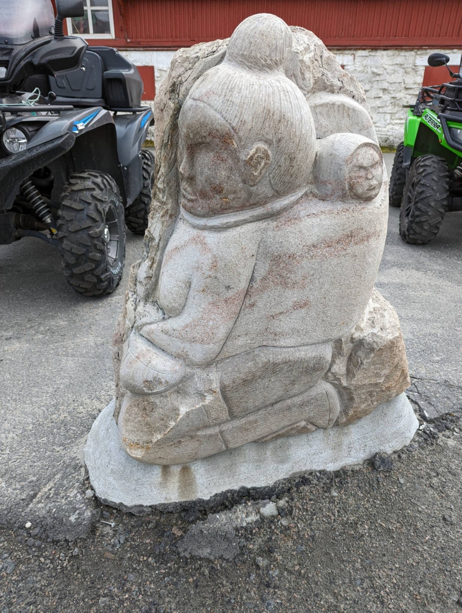 Greenland, Sisimiut - Sculpture of mother & child